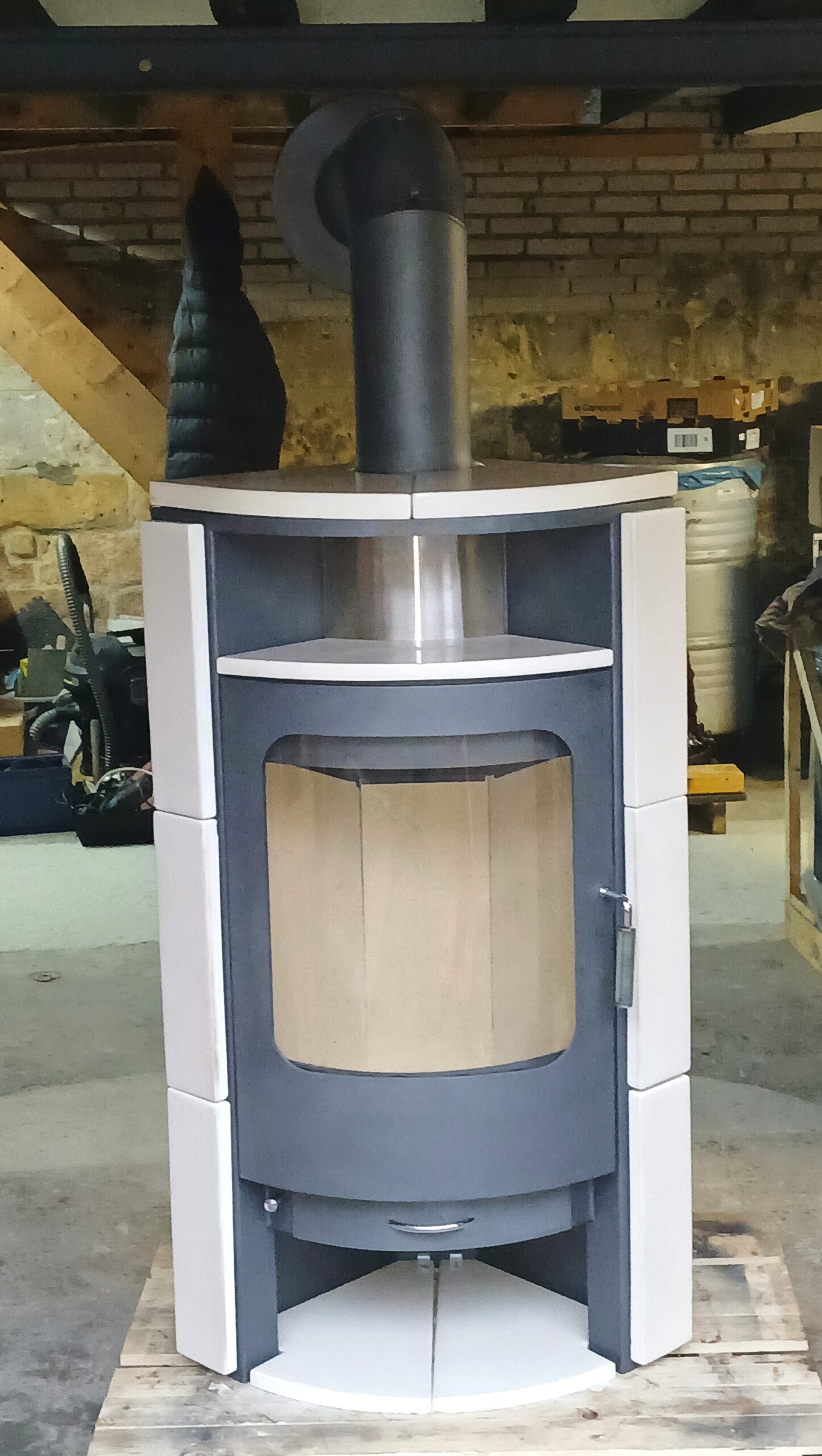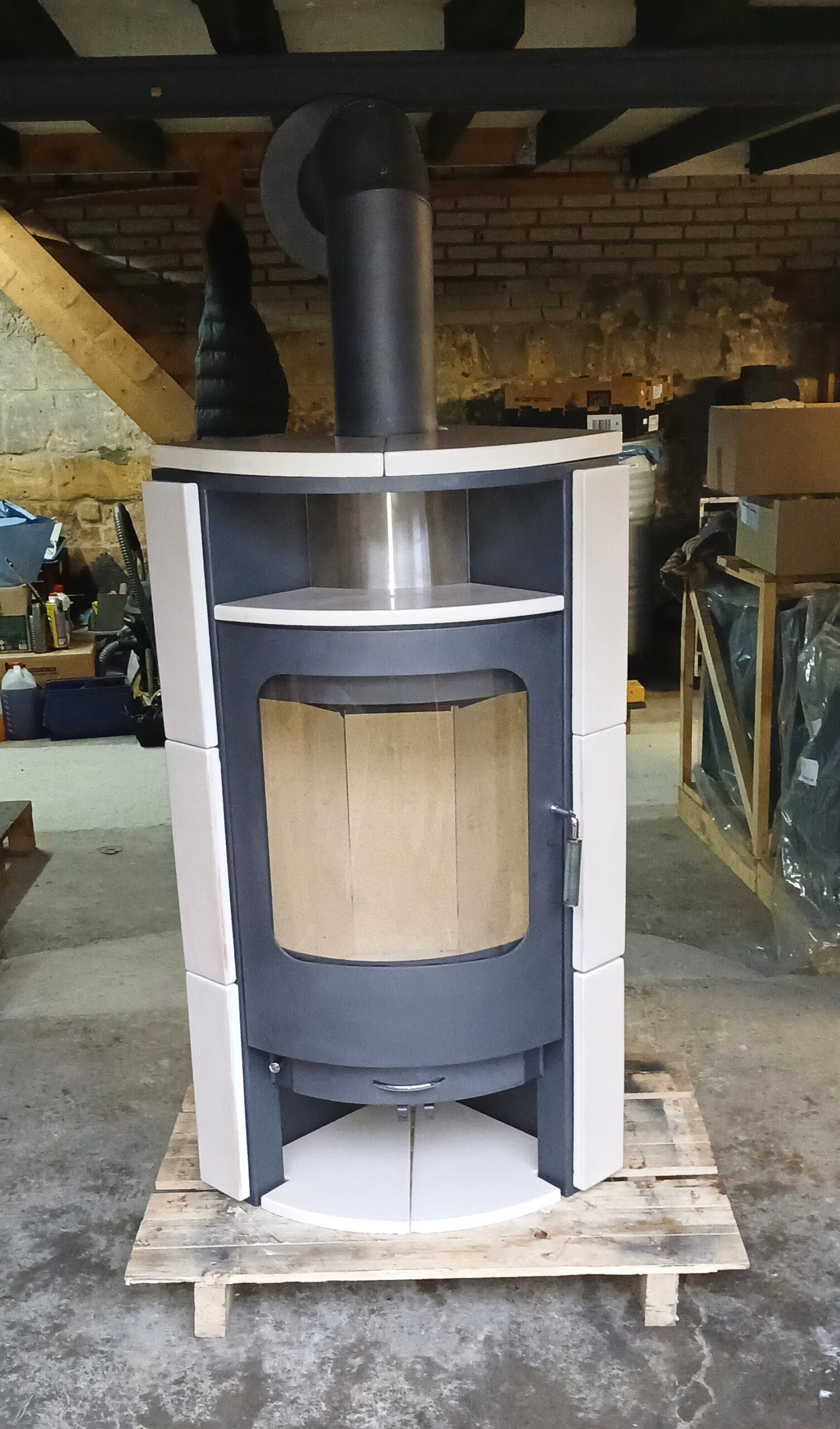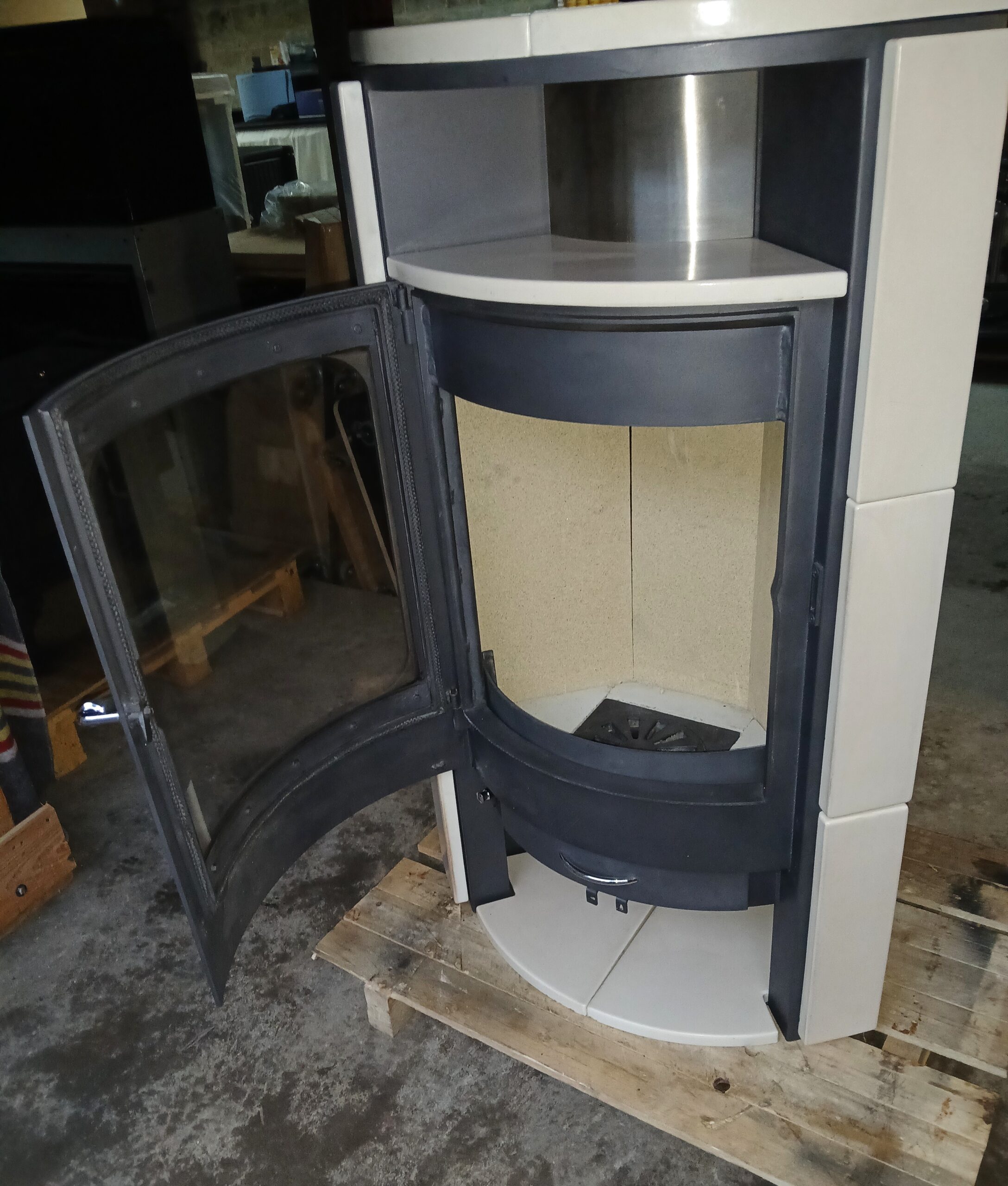 Ce type est un très beau poêle à bois allemand indépendant et élégant avec une grande fenêtre et un compartiment en bois. Possède des carreaux en céramique sur les côtés, à l’avant et sur le dessus. Puissance max. 8 kW et poids env. 150 kg. Dimensions de l’espace de chauffage 40 x 40 x 28 cm (H x L x P).