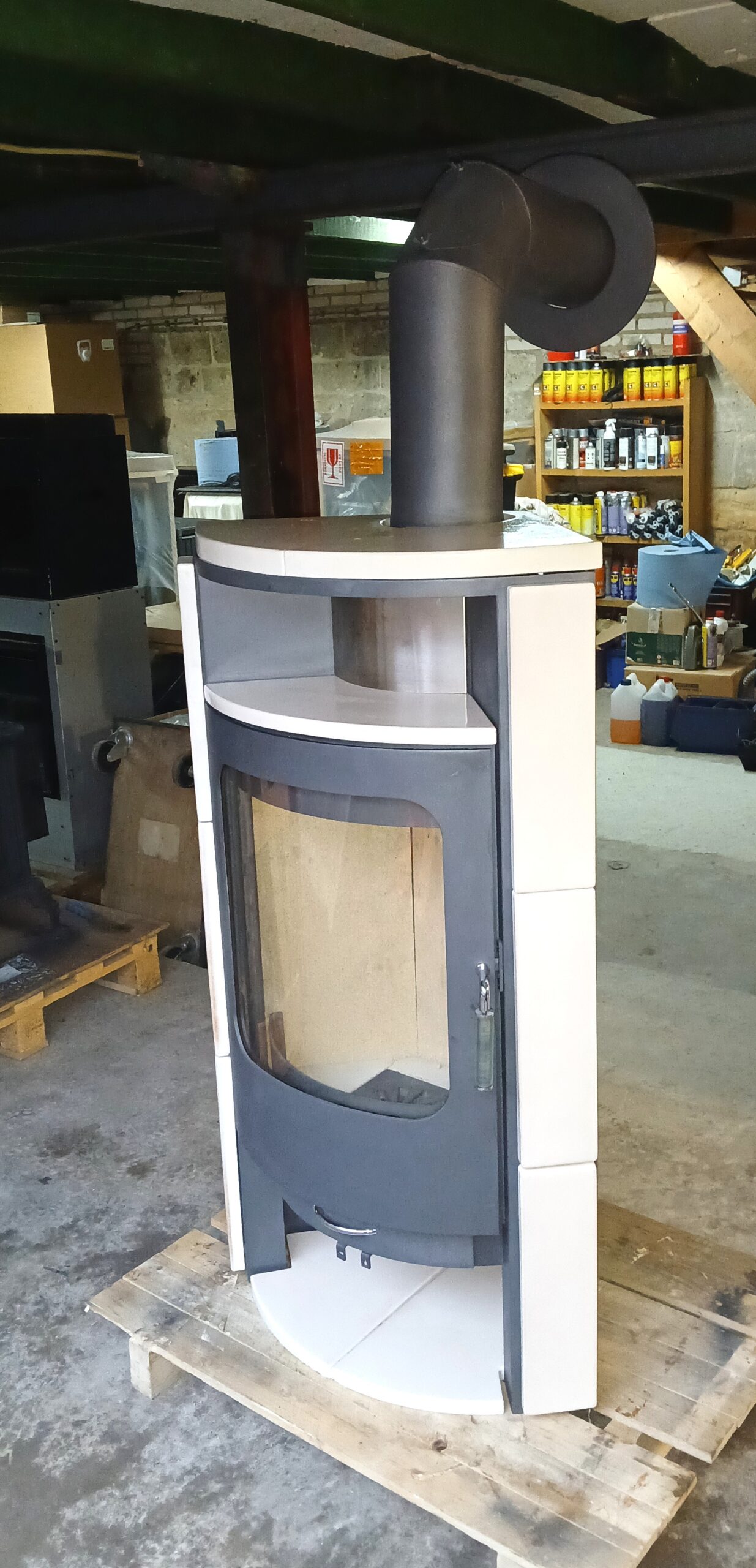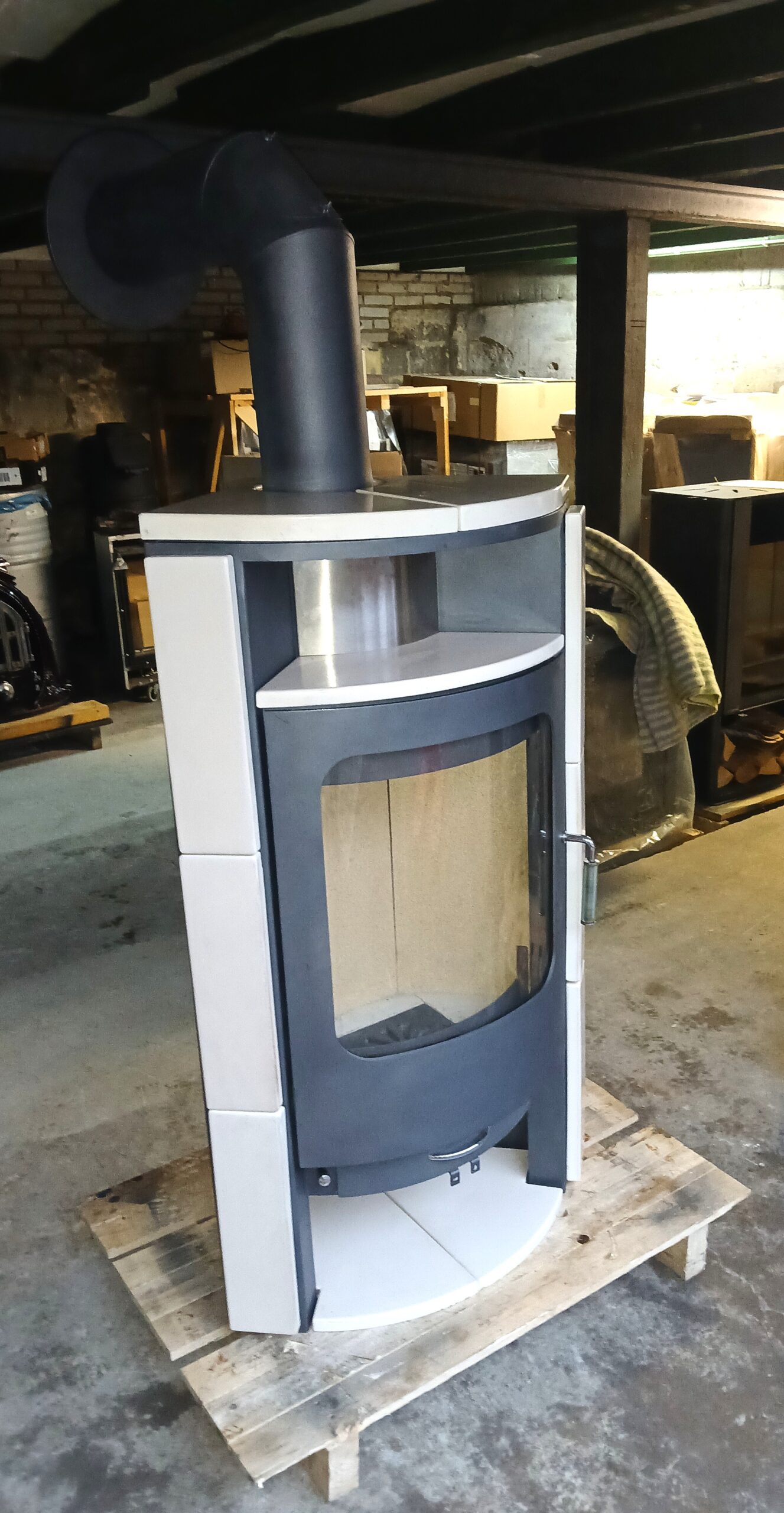 Dit type is een hele mooie strakke vrijstaande Duitse houtkachel met een groot raam en een houtvak. Heeft keramische tegels aan de zijkanten en voor- en bovenzijde. Vermogen max. 8 kW en gewicht ca. 150 kg. Afmetingen stookruimte 40 x 40 x 28 cm ( H x B x D). Heeft een boven aansluiting met diameter 15 cm en inclusief zwarte aansluit set. Afmetingen 115 x 64 x 45 cm (H x B x D).