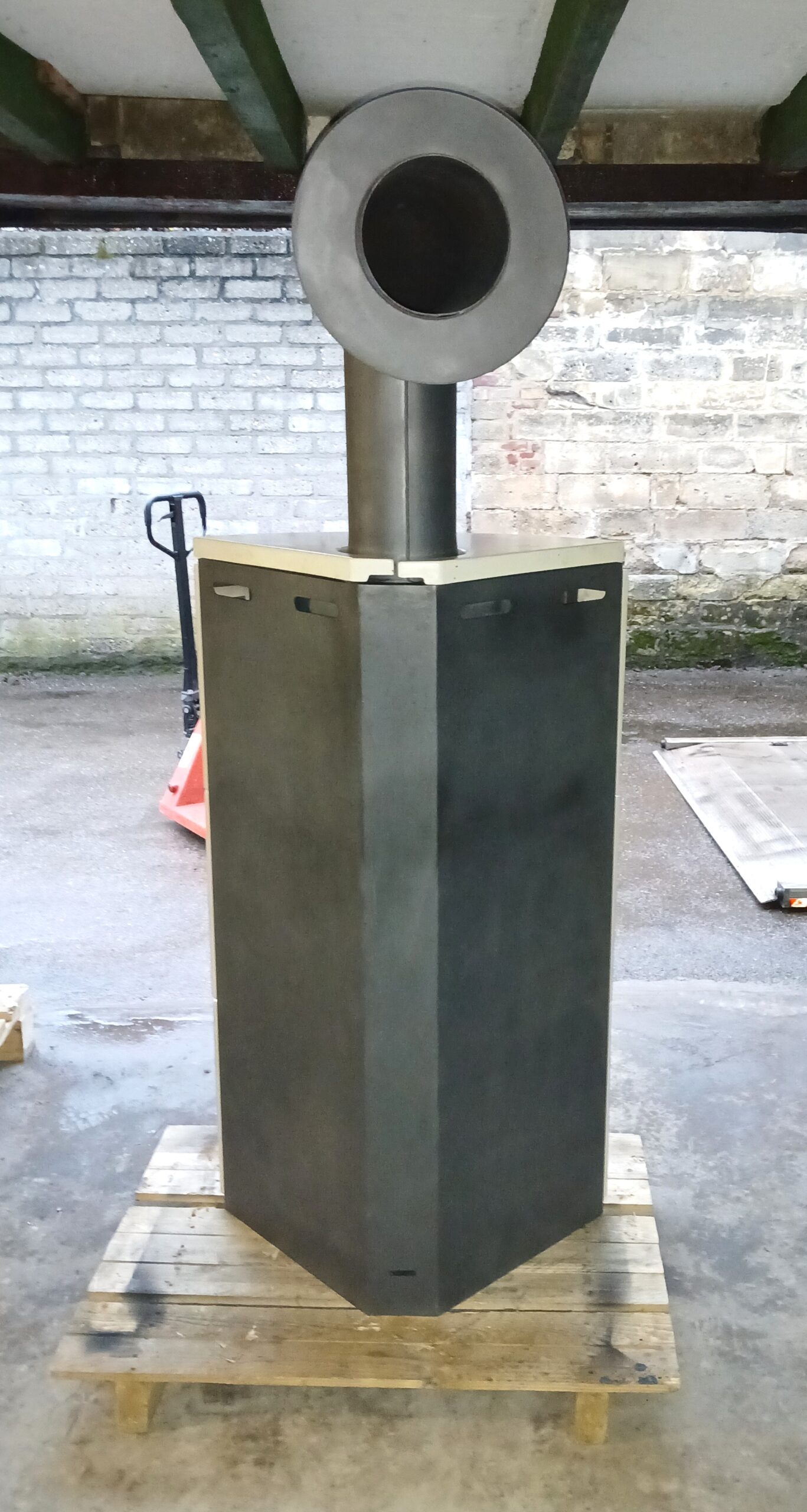 A une connexion supérieure d’un diamètre de 15 cm et comprenant un ensemble de connexion noir. Dimensions 115 x 64 x 45 cm (H x L x P).